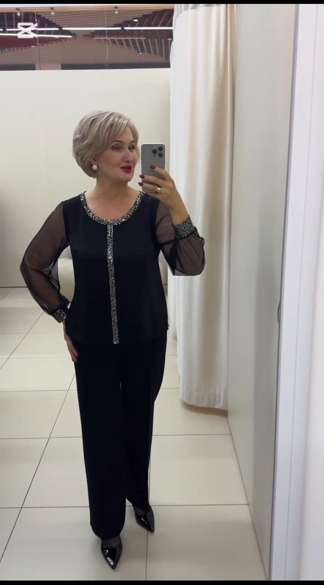 Bluza are maneca din tull si insertii benzi cu paiete.Lungime 70 cm