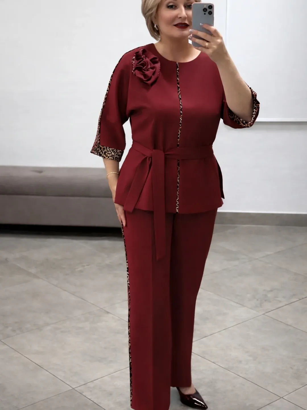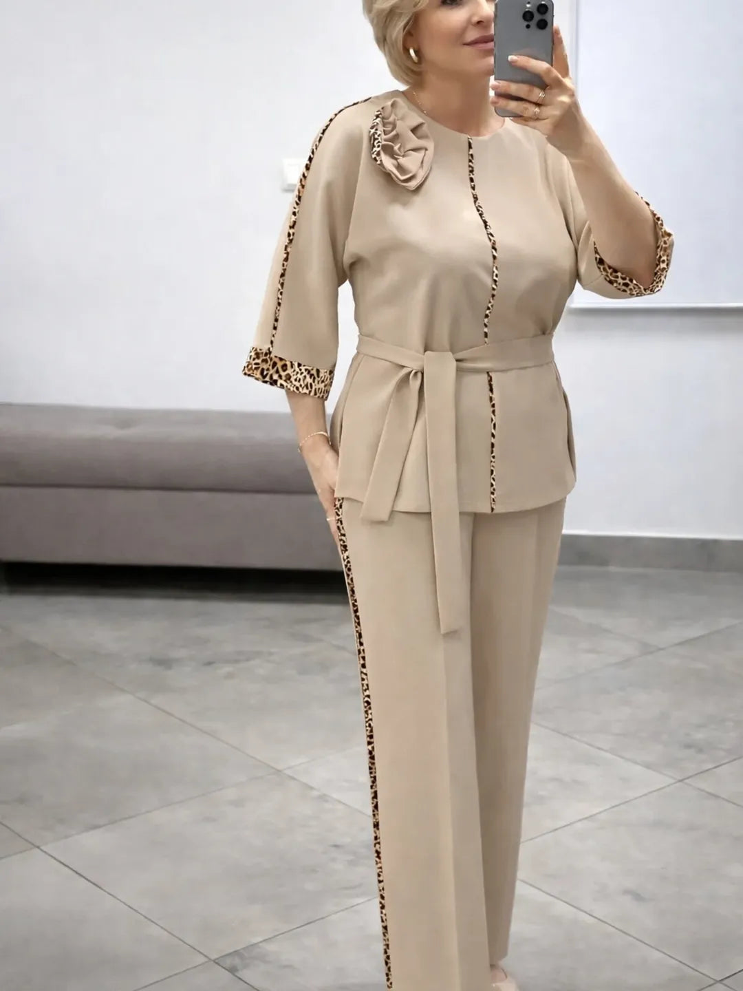 Compleul Petra din 2 piese este confectionat dintr-o stofa usor elastica(barbie).Este un compleu elegant cu insetii de material (animal print).